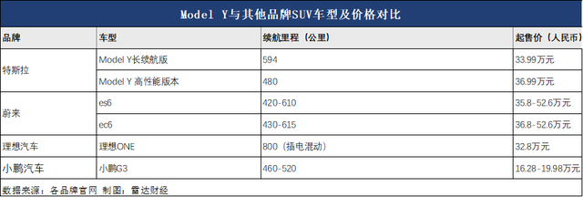 从性能来看,国产Model Y相比于同价位竞品车型也具备一定的优势。