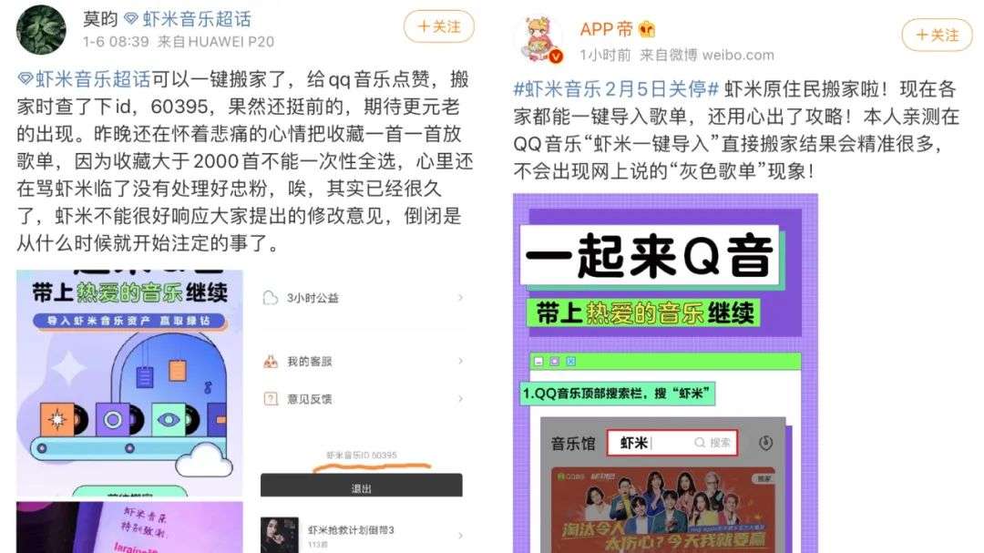 伴随着关闭,虾米用户除了怀念和不舍,更现实的是如何将珍藏的歌单和专辑迁移出去。我们观察到,在虾米音乐宣布关停的当天上午,QQ音乐就迅速推出了“一键搬家”功能,只要输入虾米ID,就可以完成一键搬家。次日凌晨,网易云音乐也推出“一键迁移”功能。其中,QQ音乐这次的“快准狠”也赢得了很多网友的自发安利。