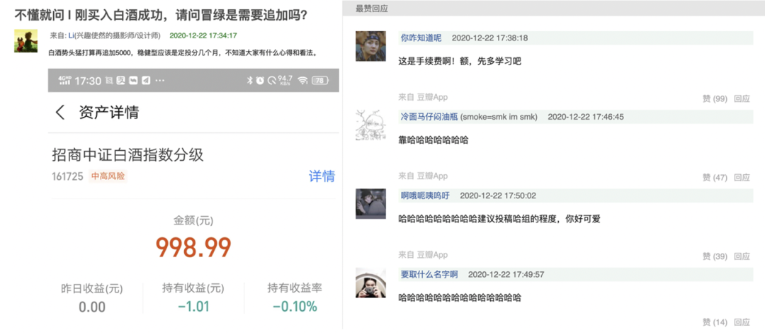 在这股大潮下,马迪也怀揣壮志,成为了理财届的新人选手。“犹豫了好久,今天终于上车了白酒基金!”马迪激动地告诉DT君。
