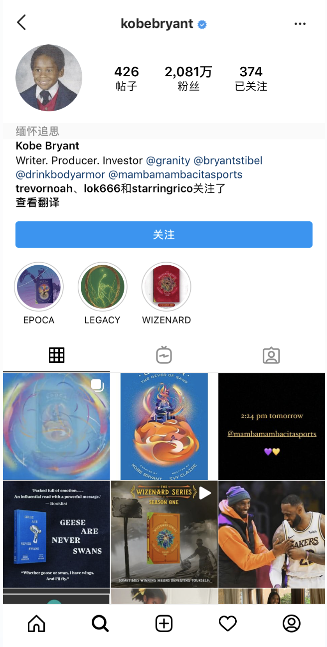 比如,篮球明星科比的Ins账号仍有更新,2020年的愚人节,将科比设为“特别关注”的粉丝看到了“科比更新的动态”,恍惚之中给人一种“他从未离去”的错觉,有网友评论道:“感谢用这样的方式让我感受到你还在。”