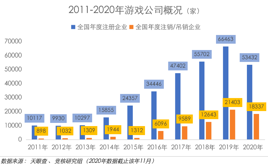 在2020年6月,游戏公司倒闭数量达到了顶峰,单月即有3405家公司永远离开了这个行业。