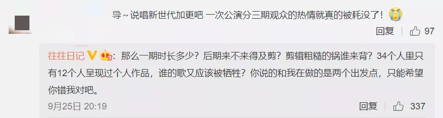 对于偏爱真人秀环节的观众来说,仅仅观看短片的纯享片段是不够的。即便选秀综艺已经大多超过2个小时,每位选手在节目中镜头分量的多少仍然是粉丝争论的重点,镜头多、故事线完整的选手,很容易被不喜欢的观众“打成”节目组捧的“皇族”。粉丝控诉自家爱豆镜头少的现象也时有发生,《这!就是街舞》中粉丝就曾经因为把节目中王嘉尔的专业评价剪掉而感到不满。