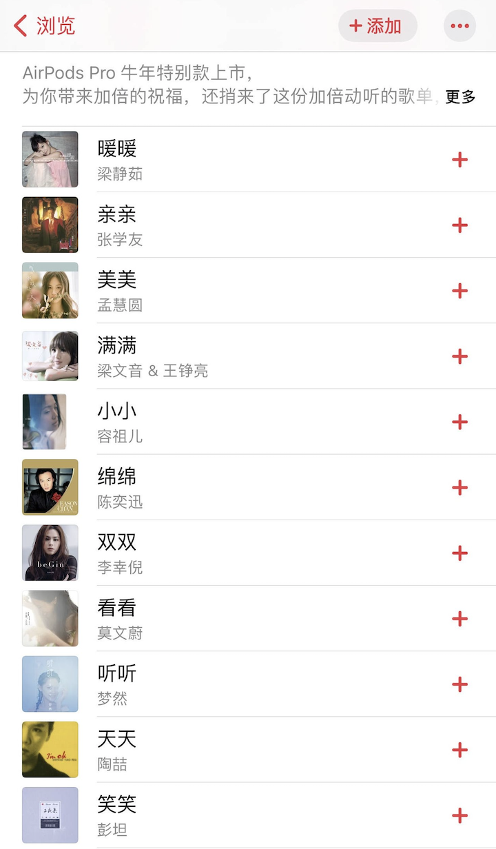在Apple Music中,苹果为纪念该款耳机的推出也制作了一张专属歌单,歌曲也非常富有针对性。