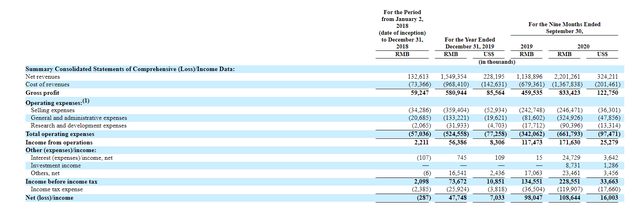 从招股书上看,雾芯科技成立不过三年,营收规模便已数十亿。财报显示,2020年前三季度,雾芯科技营收、净利润分别为22.01亿元、1.09亿元。