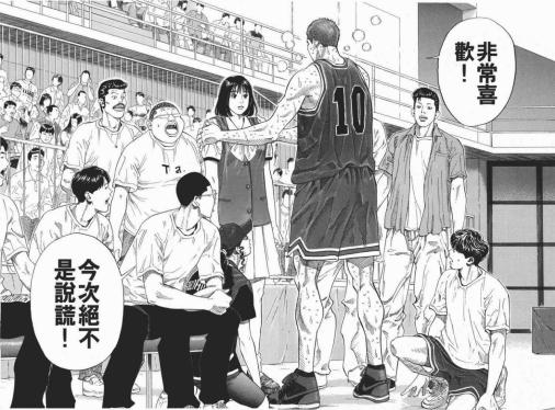 从漫画一开始因为“我喜欢篮球部的小田”而心碎,痴迷于晴子,“自称天才”的红毛猴子加入湘北篮球队,到“非常喜欢,今次绝不是说谎”。