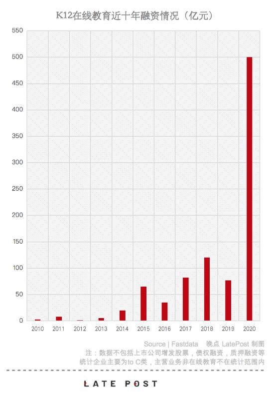 资本的嗅觉最灵,整个2020年,有超过500亿资金流入教育行业,创下历史新高,比2019年增加了5倍。