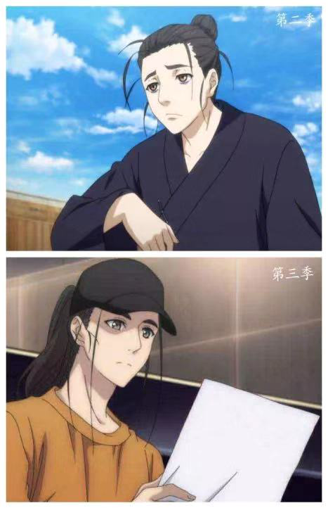 制作公司的更换本身有很多先例,也并非洪水猛兽,《进击的巨人最终季》就由原来的霸权社更换为了MAPPA后口碑不降反升,豆瓣开分高达9.9近乎完美。但反观《一人之下3》在更换制作公司后不仅在人设画风上产生了比较明显的割裂感,丢失了原先的特征,比如在第二季出场不多但人气极高的王也,从慵懒放松、无精打采的“道爷”,变成了干净整洁、毫无特点的标准“富二代”。呆萌无邪略带邋遢的冯宝宝在第三季中脱脱变成了一个瓜子脸网红主播的造型。