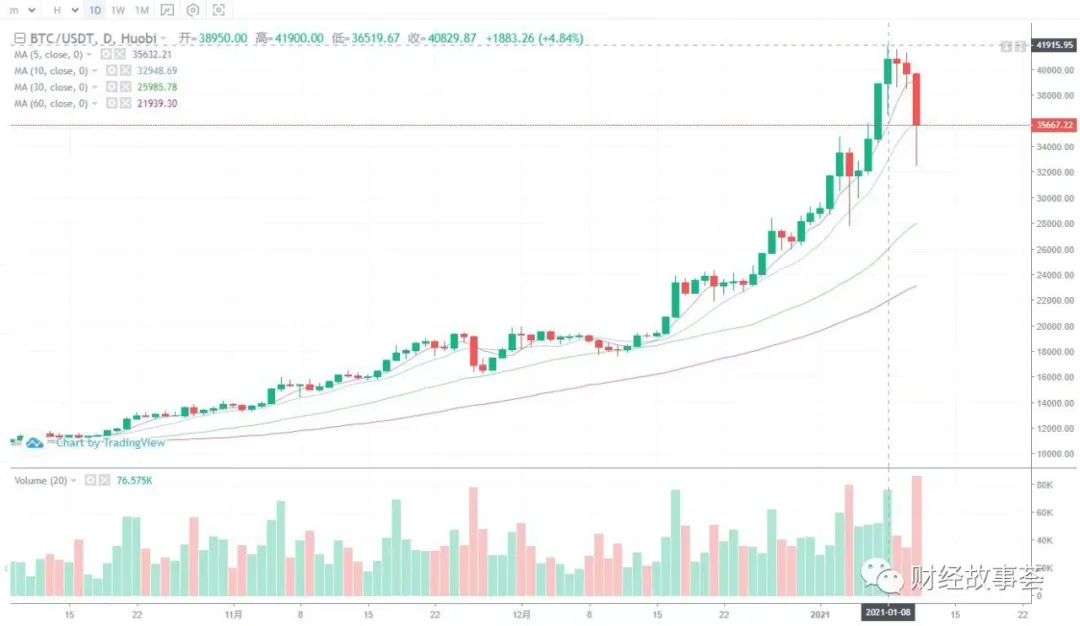 比特币涨得有多高,那些与比特币擦肩而过的不幸者就有多痛。火币全球站的行情显示,今年1月8日,比特币最高涨至41900美元,约为27万人民币。
