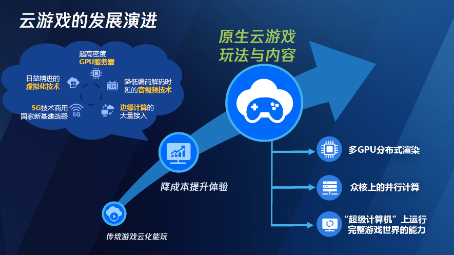 他补充说,现在云游戏还只是探索阶段,离真正大规模普及和商业应用还有一定的距离,而终极目标是原生云游戏。