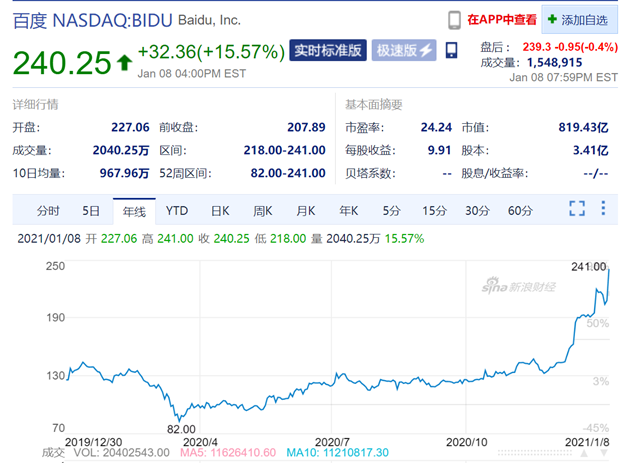 在不谓侠看来,这事官宣基本上就是一个时间问题,毕竟上个月开始传闻之下,百度股价就涨起来了。