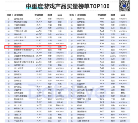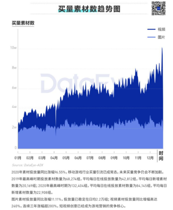 根据DataEye发布的《2020移动游戏全年买量白皮书》,素材投放量同比涨幅96.55%,几近翻倍,手游买量的竞争就像一辆不断加速的火车,与之相对应的是不断攀升的广告营销投入成本。翻看全年中重度产品买量排名,《最强蜗牛》位列第10。