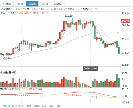 此时股价为330.46/股,而8月5日盘中摸高为671.6元/股。