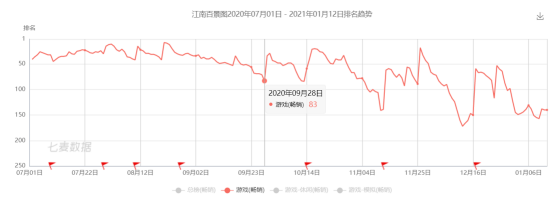 然而《最强蜗牛》、《江南百景图》长线表现并不如意,三个月的坎便开始出现下滑,前者在高买量下维持在30上下,后者目前已经日常150名上下。从产品来看,这两款游戏的产品类型和付费设计决定了其ARPU不会像SLG、MMO那样高,但对于资本市场来说,其表现并未到达实现长期正向循环的要求,或者说在外界看来《最强蜗牛》无法成为下一个《问道》(上线四年多仍保持20上下)那样长期稳定的吉比特支柱。