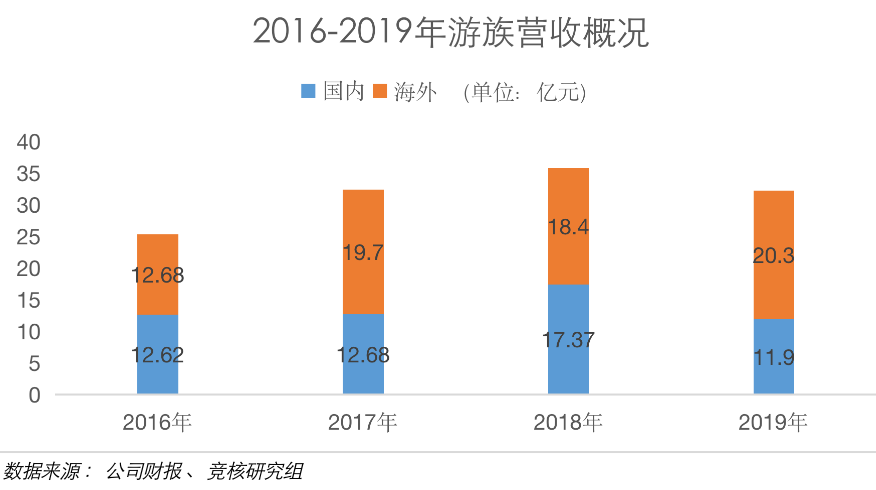 财报数据显示,2019年游族全年营收近32.2亿元,其中海外游戏业务收入20.3亿元,占比63%。游族2020年半年报披露,公司2020H1移动游戏业务实现营业收入20.35亿元,同比增长65.27%。