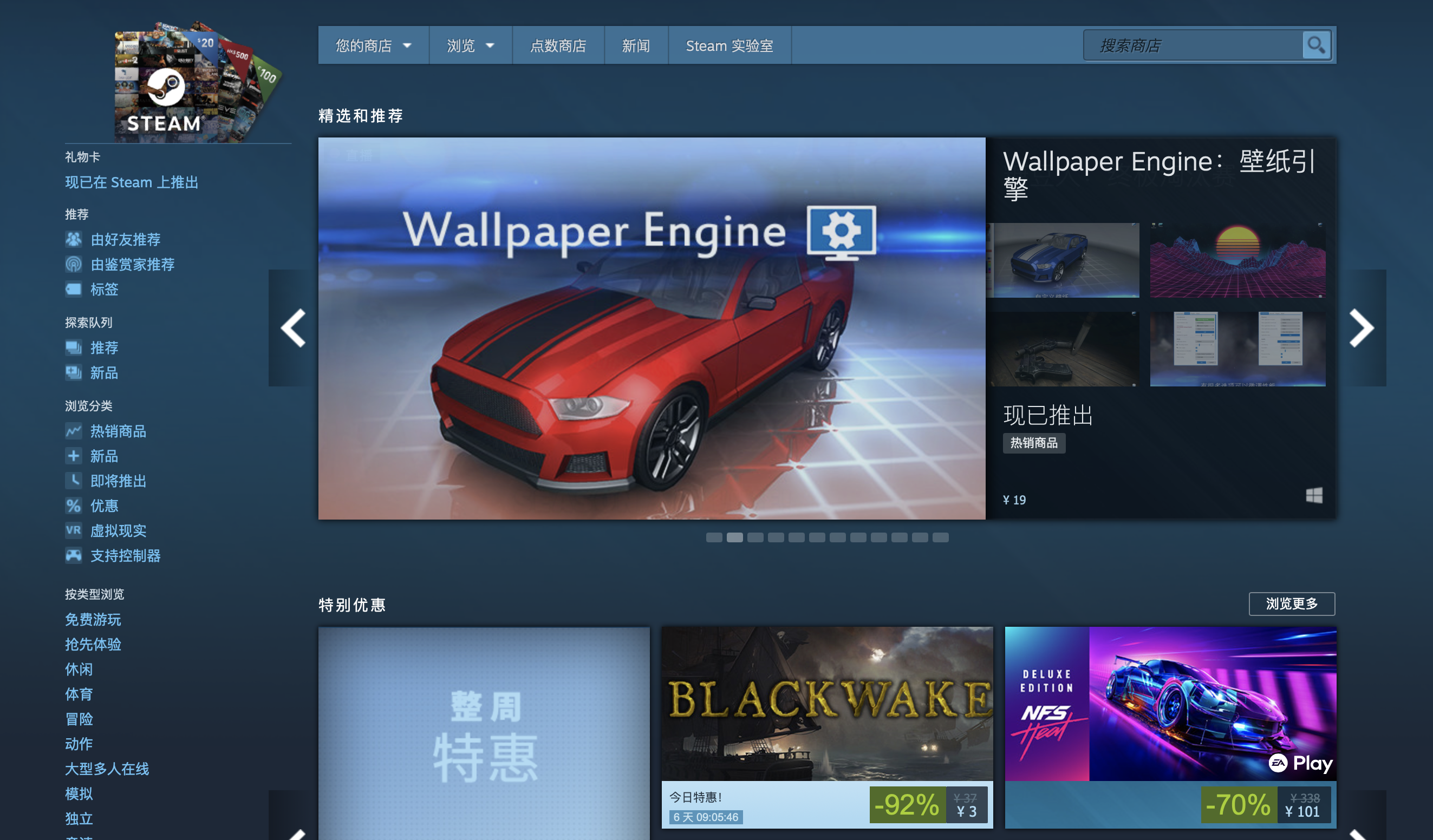 或者举个例子:现阶段的Steam就像是你在家里,使用名为互联网的「传送门」去美国超市消费。只不过他们针对中国客户专门设立了中文区域,并把亚洲货品放到了推荐位而已。