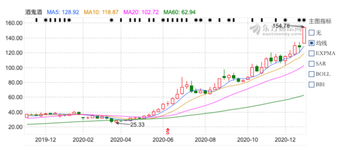 作为今年的大牛股之一,酒鬼酒却让众多投资者“望而却步”、“涨到你怀疑人生”。3月最低25.33元/每股,到笔者截稿时的153.99元,股价翻了6倍,市值达到500亿。酒鬼酒怎么了?