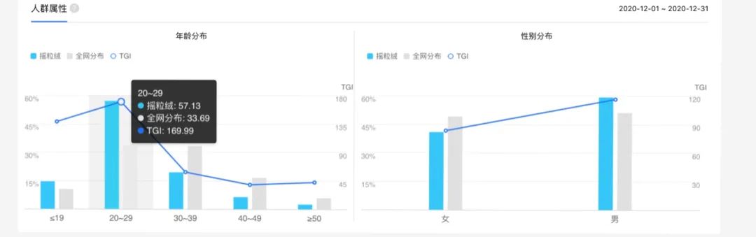 当人气爱豆、流量小生到影视明星人手一件摇粒绒行走在机场、街头时,明星渠道所建立起的年轻态流量池已然成型。百度数据显示,摇粒绒受众群中,20~29岁人群占比近六成,而这个年轻群体正是主导未来5到10年中国乃至世界消费格局的主力军。