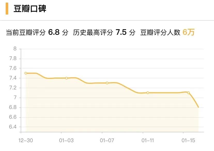 但在口碑层面,就不太尽如人意了。尽管后期的“言锁”、“谢锁”cp,在一定程度上引发了部分观众的真情实感,但关于《流金岁月》悬浮、人物扁平等争议,也一直未曾停息。从豆瓣评分来看,《流金岁月》的口碑一直在走下坡路,已经出现了从7.5分到6.8分的口碑回落。