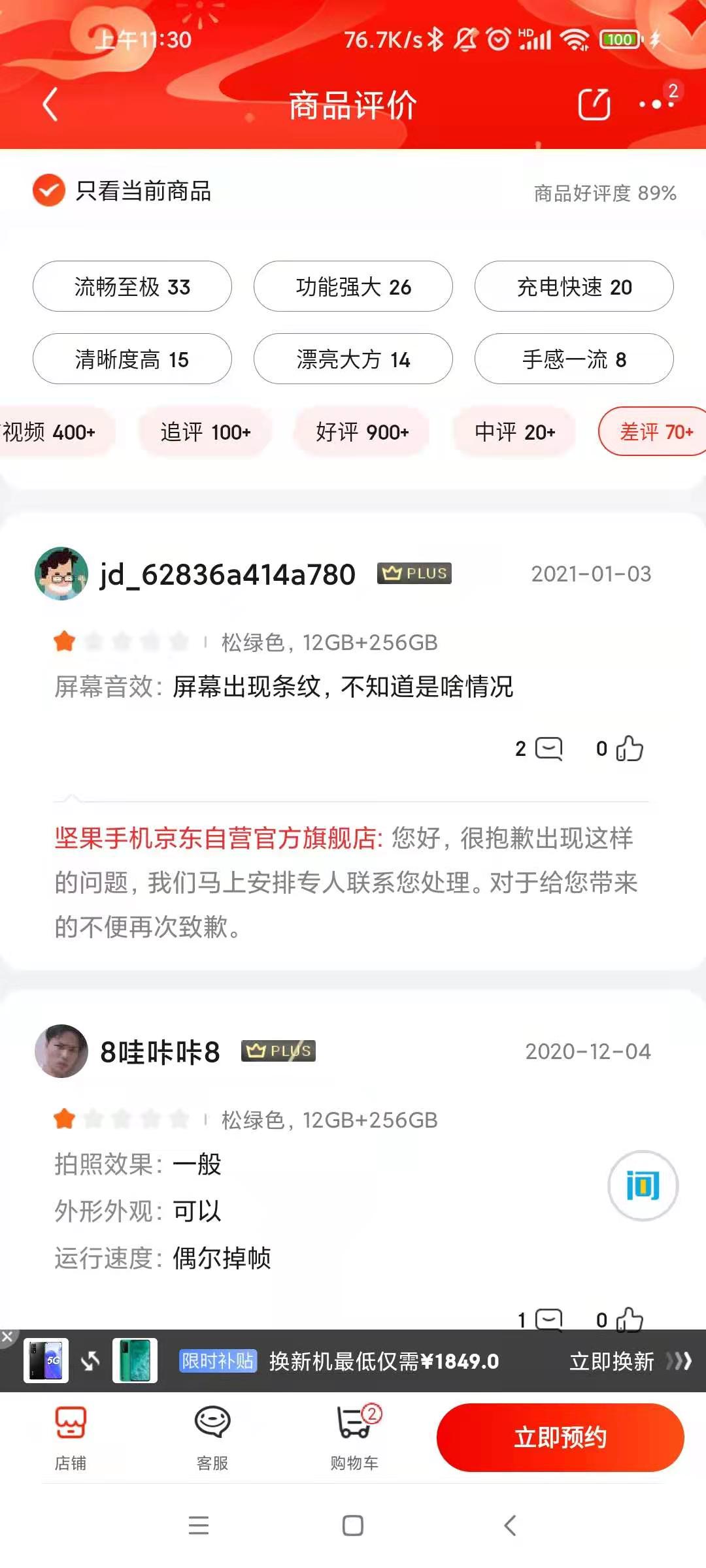 产品质量问题,是坚果R2走向失败的重要原因之一。以京东商城为例,坚果R2如今上市不到三个月,商品好评率只有89%,这在数码产品里面算是非常低的。不少用户表示,自己购买的坚果R2存在花屏的现象,即便换货依然存在这种问题。如果手机上市一两个月后,出现较多用户反映相似问题,那么说明这款产品的品控一定做得不好。