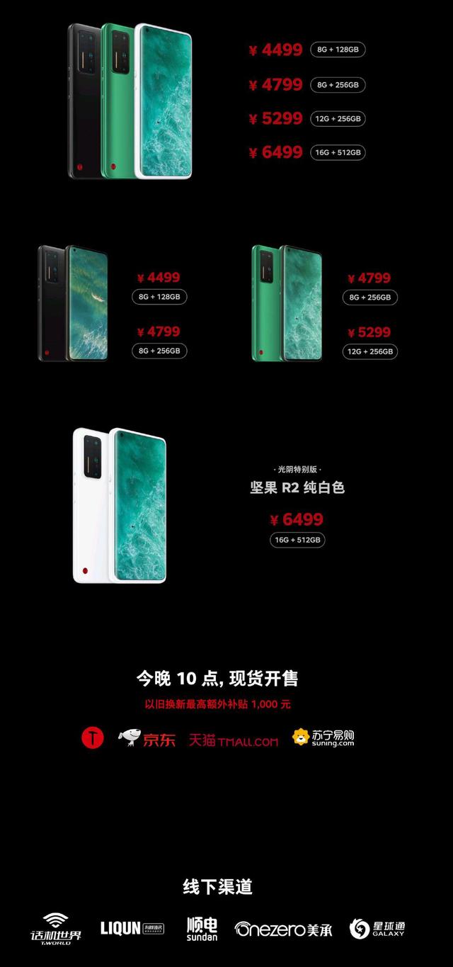 其次则是定价问题,作为一款延迟将近半年推出的骁龙865旗舰手机,坚果R2的起售价达到了惊人的4499元。作为一个小众手机品牌,坚果R2的高定价直接遭遇了市场的冷遇。作为对比,去年上半年发布的小米10起售价为3999元,而Redmi K30s和iQOO Neo3等产品更是将骁龙865手机的价格压到2500元以下,坚果R2确实没有什么性价比。