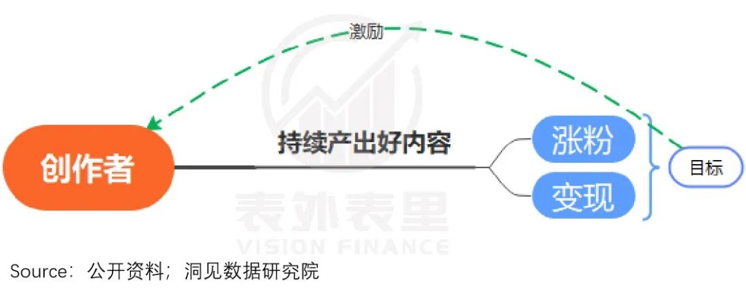 如下图所示,在一个具有流动性的内容平台,创作者从输出到创收是一个良性循环的过程:创作者持续产出好的内容,用户喜欢,创作方涨粉、变现创收。平台方以此吸引更多创作者入驻。