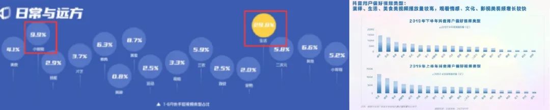 快手生活类视频占平台的30%左右,和第二名的小姐姐类内容(10%左右)差距很大,内容结构比较单一。