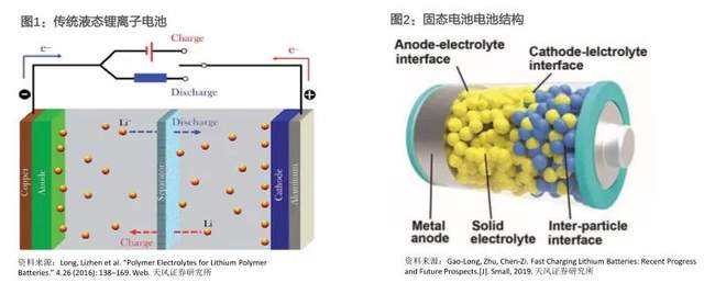固态电池,顾名思义,就是用固态电解质来代替传统锂离子电池的电解液和隔膜。在关键特性上,可以容纳更高的能量密度,更长时间的循环使用寿命;在安全性上,固态电池具有不易燃、耐高温、无腐蚀、不挥发等特性,起火燃烧风险大幅降低;在体积上,固体形态能够大幅缩小电池体积,在同等电容量的前提下,可以减少汽车空间和重量,从而更好地提高整车的续航能力。