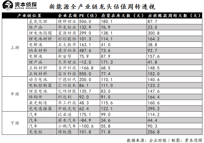 新能源的产业链简单概括就是上游有正极,负极,隔膜,电解液,中游有电池,电机,电控,下游有汽车和充电桩等。资本侦探从200家新能源概念股中,筛选了产业上中下游20家比较有代表性的企业,并集中透视整个新能源产业的运转情况。