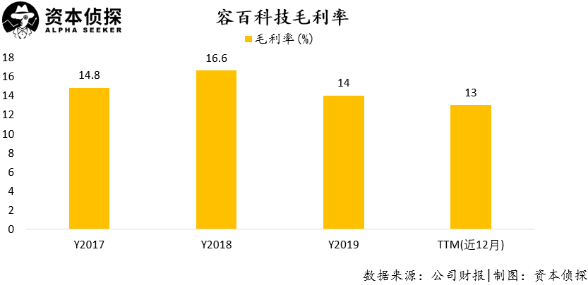 但从基本面上来看,这家公司从头到尾都被高估了。2016和2017年,容百科技的毛利率分别为12.09%和14.86%,相比于其他的竞争对手少了4到5个百分点,这也反映了容百此时在行业里的尴尬处境。