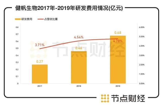 一方面,是居高不下的销售费用,另一方面,健帆生物投入到研发内的费用则少的可怜。