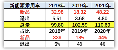 根据乘联会数据,2018年,在整体零售100万车的情况下,新品的销售达到32.98万台,占比33%。2019年总体达到102.6万辆,而新品销量为18.32万辆,占比为18%。2020年整体零售达到了111万辆,新品销量达到48万台,占比急升至44%。