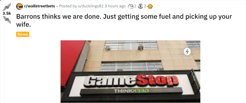 有人说,兄弟们,他们认为我们熄火了,去把你们的老婆带上再给Game Stop加点燃料!