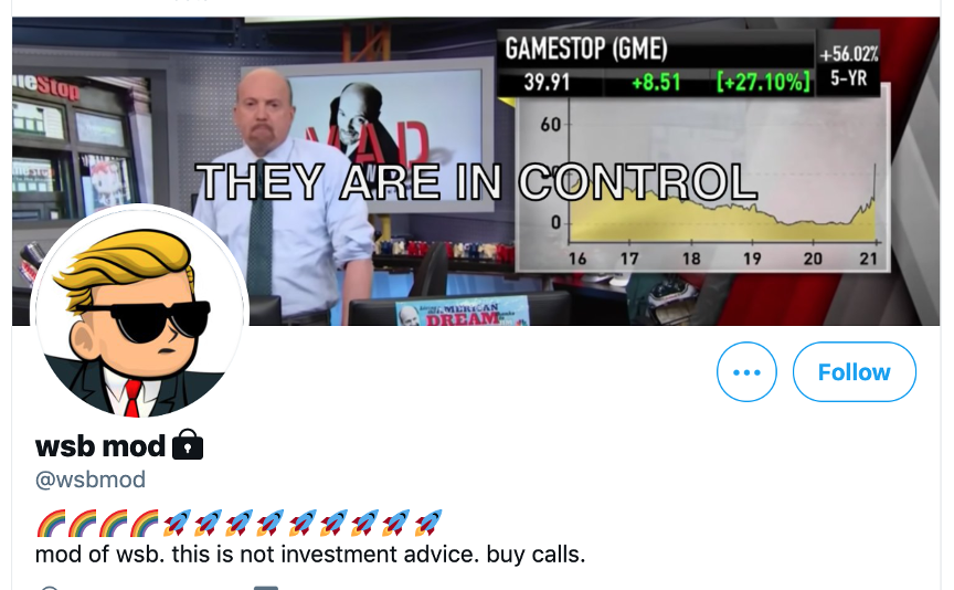 他们不相信基本面分析,也不做理性投资,大家从不买正股,一致认为买看涨期权是唯一发家致富的道路。坛友们对于股票暴涨有一个专有词汇叫 “mooning”,梦想着有朝一日自己买的股票一飞冲天直奔月球。