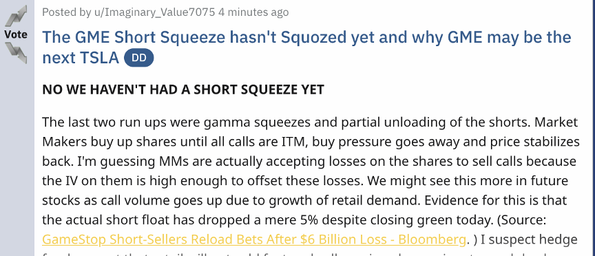还有人认为Game Stop将成为下一个特斯拉,让大家不要做空坚定信仰。