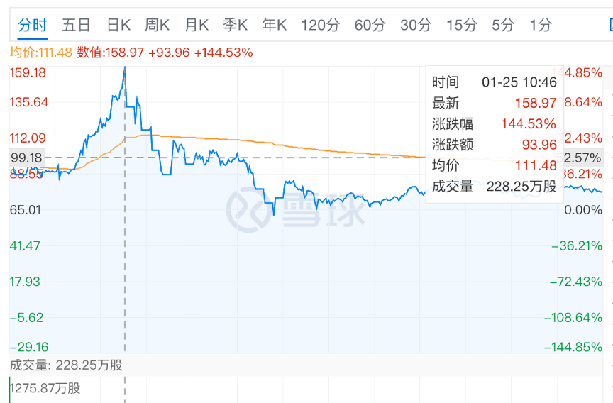 而在经过了一个周末的蓄力后,散户军团们的战斗力指数更加惊人,1月25日(周一),Game Stop盘中一度暴涨144.5%,股价触及158.97美元,换手率高达252%。