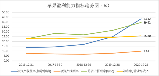 借用@新浪财经的观点,如果从净资产收益率(ROE)的角度来分析,那么五年来能达到苹果这个数字(43.42%)的A股上市公司仅有15家,但他们的平均收入规模和苹果相差甚远。就算是我们直呼不可战胜的茅台,它近五年平均ROE为27.89%,平均收入规模在577.62亿元。