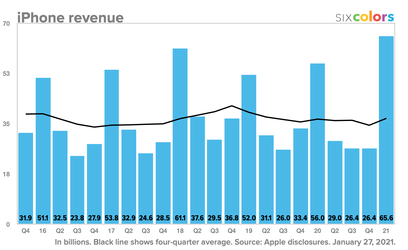 昨天,苹果发布了第一季度财报,财报显示,苹果这一季度营收为1114.39亿美元,首次突破千亿美元大关;其中,iPhone部分的营收达到655.9亿美元,也为历史新高。