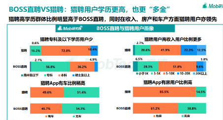 Mob研究院的数据显示,BOSS直聘用户达1800万规模(月活),猎聘约为510万。