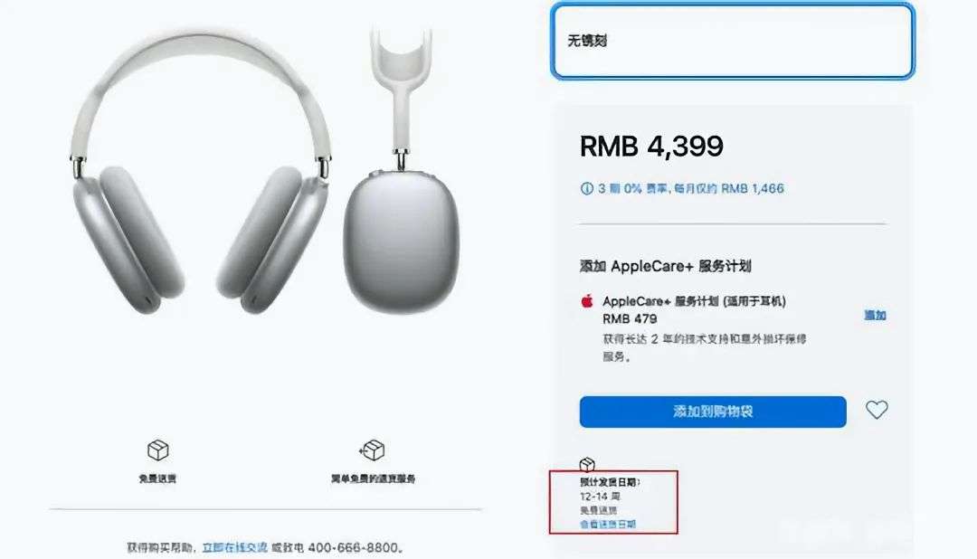 然而,事实并非如此,首批AirPods Max一经上架便被抢购一空。苹果官网显示,AirPods Max预计发货时间为12-14周,也就是3个月左右的时间,相当于2021年3月份多才能发货。