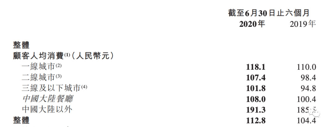 但便宜显然不是海底捞的发展方向。海底捞每年都在涨价,近几年几乎每年人均消费额都以3%的幅度增长,从人均客单量90元到人均客单量110元花了7年时间,而2020年上半年海底捞的客单价提升8%,一线城市人均消费直逼120元。