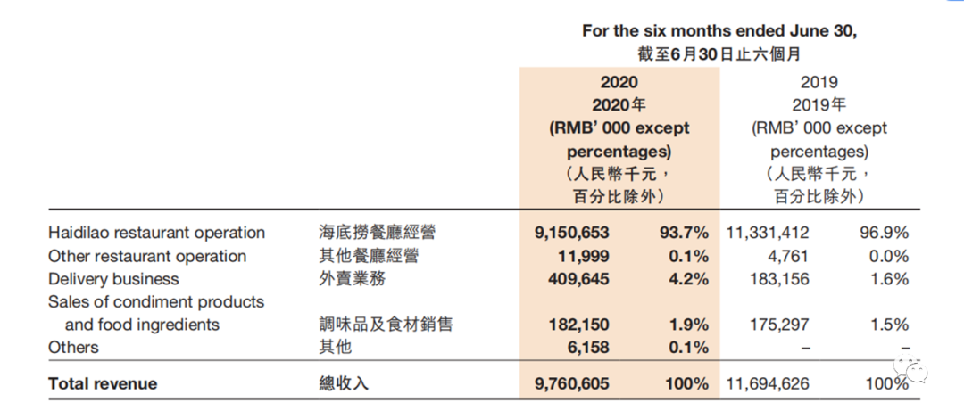 海底捞2019总收入为116.9亿元,其中火锅门店收益占96.6%,2020年上半年受新冠疫情影响,海底捞门店火锅店客流减少,火锅门店的收入贡献率下降为93.7%,但火锅外卖业务提升显著。