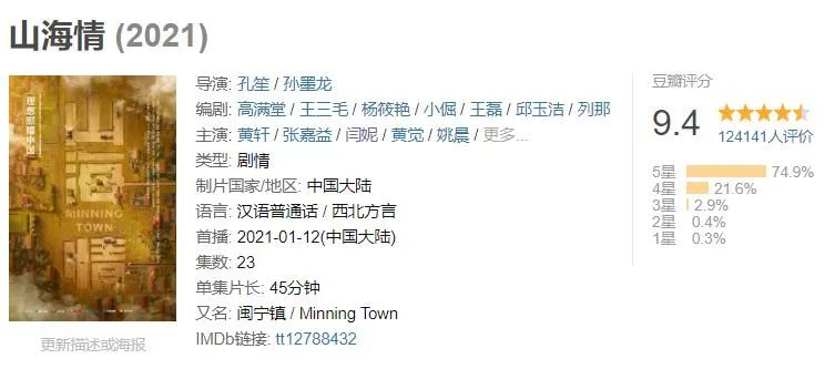 《山海情》由正午阳光制作,豆瓣评分9.4,剧中一众主演面朝黄土背朝沙、积极投入新农村建设,无论是演员还是剧情,《山海情》很好地吊打了主演扮嫩、美颜滤镜开到十级、剧情俗套等诸多低品质剧集。
