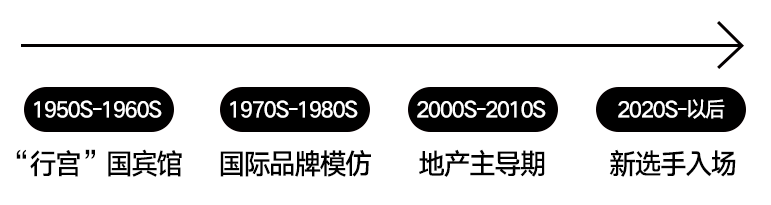 从定义上来看,奢华酒店并不等同于高端酒店,而是比高端酒店在定价、设计、文化上有着更高维的标准。如果认真去追溯国牌奢华酒店的成长历程,我们必然会惊讶于其起点之高——从20世纪50年代的国宾馆时期,再到如今的国牌奢华酒店,近70年的历程,可分出4个阶段。这是一个从“行宫”到“酒店”的漫长过程,更是一个从“中式奢华”到“西式奢华”,再回归“新中式奢华”的复兴之路。