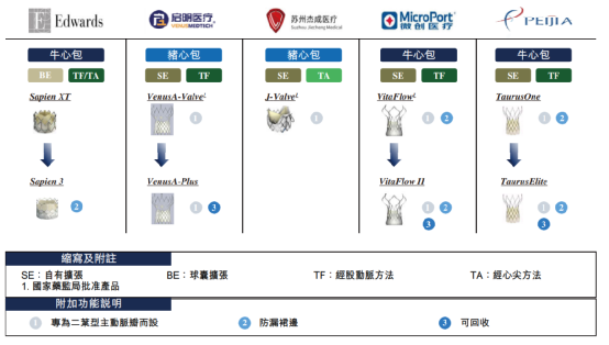 注:TF(经股动脉)、TA(经心尖)、SE(自膨胀式)、BE(球囊膨胀)、BP(牛心包)、PP(猪心包)