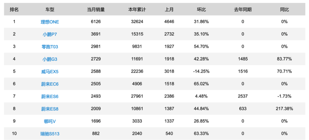 2020年12月国内造车新势力销量排行,图源盖世汽车