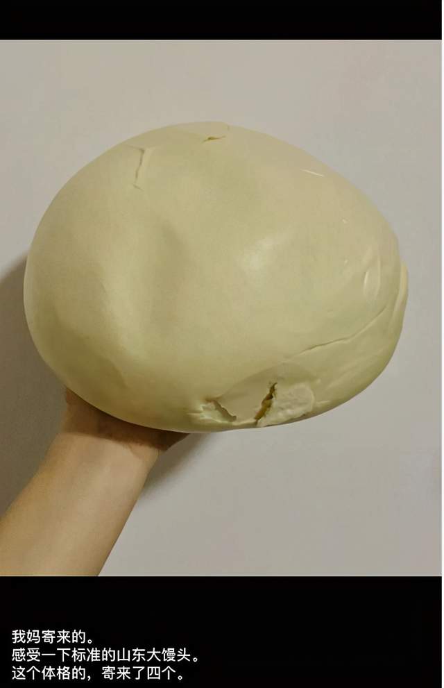 老家在山东的赵铭,收到了妈妈寄来的脸盆大的馒头,“我妈一口气寄了四个,生怕我饿着。运费比馒头贵,快递费都花了100多块钱。”