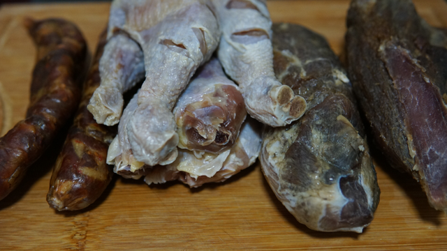 “前几天妈给寄了年货。香肠、羊排、三只鸡、一只鸭,还稍带了一把自种的小青菜和葱蒜。快递终于赚到了节俭老母亲的钱。”