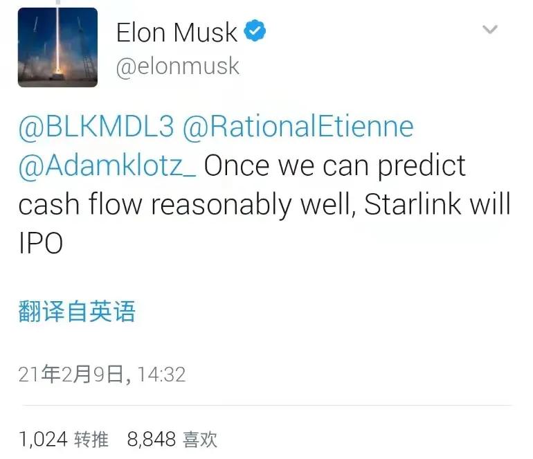 2月9日,埃隆·马斯克又在社交媒体上扔出重磅消息:未来星链(Starlink)或将IPO上市。这已经不是他第一次公开表示星链将会上市了。