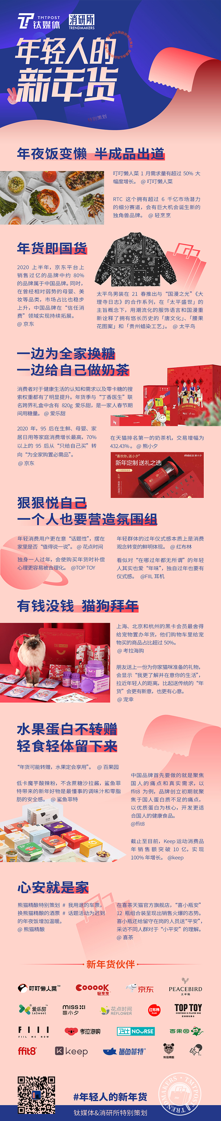不仅看到变“懒”的年夜饭,钛媒体&消研所(微信公众号ID:trendmakers)联合18家年货伙伴,消研年轻人,定义新年货,七大新年货趋势也抖擞出炉。