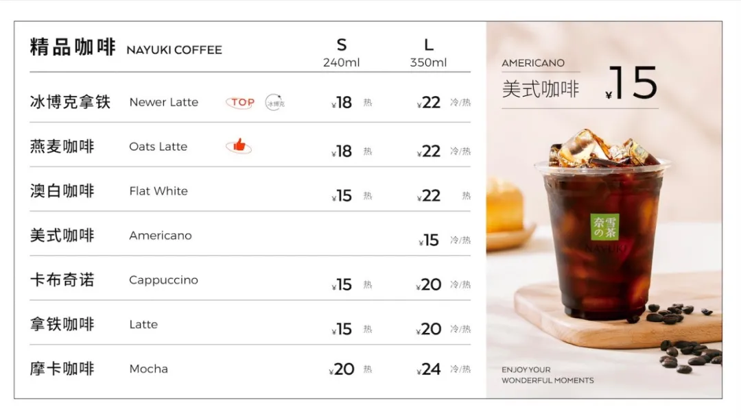 奈雪Pro店咖啡产品线菜单